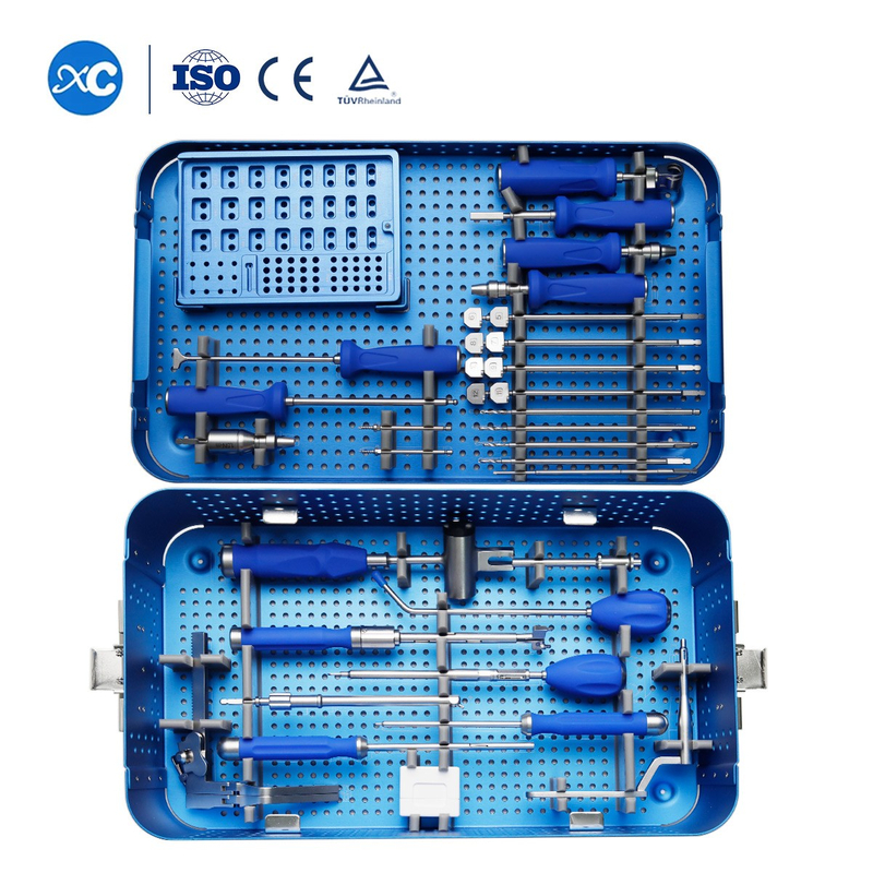 Набор инструментов для шейного кейджа с нулевым профилем представляет собой специализированный набор инструментов, используемый при процедурах передней дискэктомии и спондилодеза шейки матки (ACDF). В отличие от традиционных систем, требующих передних пластин и винтов, эта система включает самоконтрящиеся или встроенные винты непосредственно внутри клетки. Изготовленный из высокопрочных биосовместимых материалов, таких как полиэфирэфиркетон (PEEK) или титан, он сводит к минимуму риск раздражения мягких тканей и аппаратных осложнений.