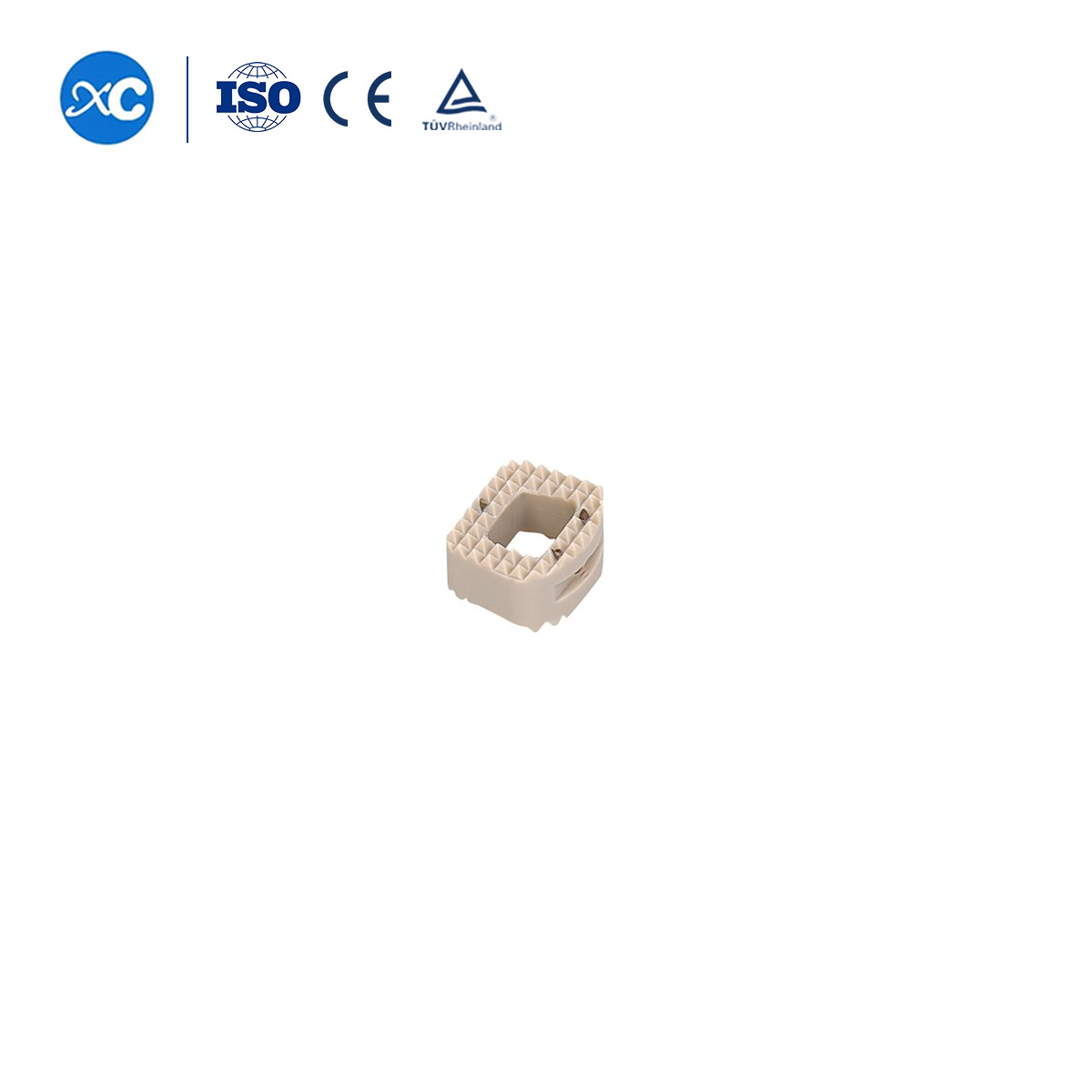 Cervical PEEK Cage — это межтеловой имплантат, предназначенный для замены поврежденного или дегенерированного шейного диска. Размещенный между двумя соседними позвонками, кейдж поддерживает высоту диска и способствует сращению костей, в конечном итоге стабилизируя шейный отдел позвоночника. Использование PEEK, высокоэффективного полимера, позволяет лучше оценивать визуализацию и результаты слияния по сравнению с традиционными металлическими имплантатами.